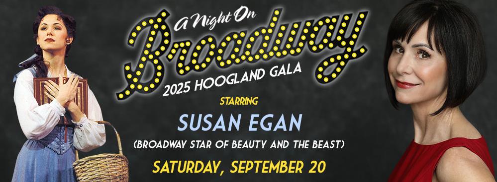 We are excited to announce the Hoogland Center’s annual gala, A Night on Broadway, will take place on Saturday, September 20th! The event will feature a silent auction, dinner, and a thrilling performance by Broadway star Susan Egan!